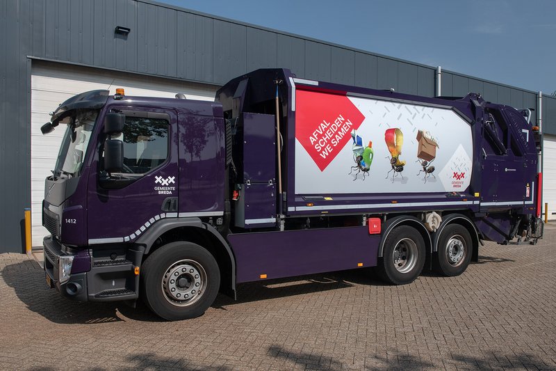 U ziet voortaan deze vuilniswagen door de straten rijden (zie foto).