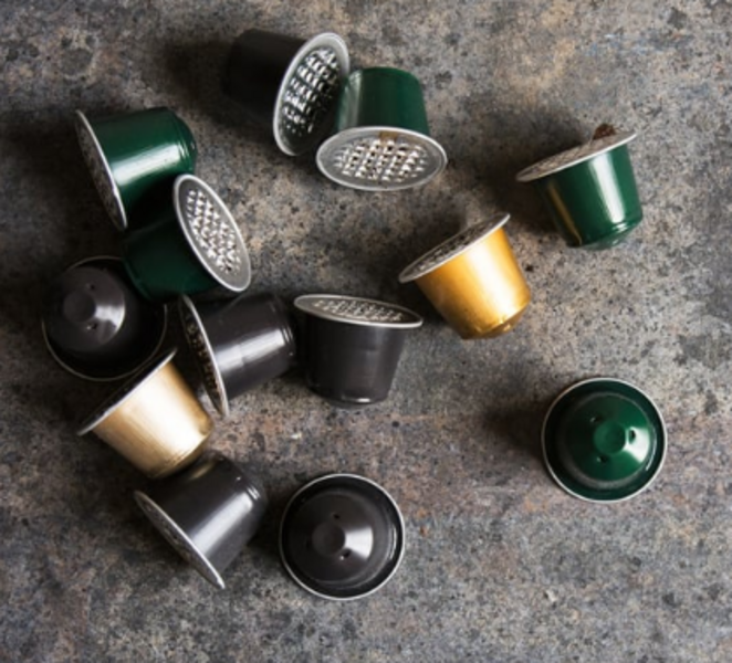 - Aluminium en plastic koffiecapsules (vol of leeg)
